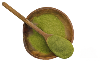 Mixing kratom powder natural ingredients home kitchen creative process. Isolated on transparent background, png.