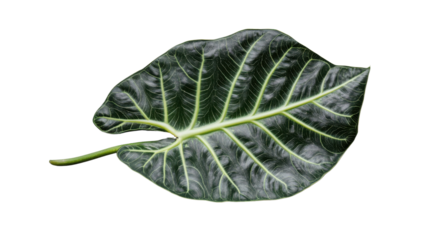 Stunning variegated Alocasia Frydek plant in modern pot. This rare houseplant features vibrant green leaves and striking pattern, ideal for indoor botany and clipart