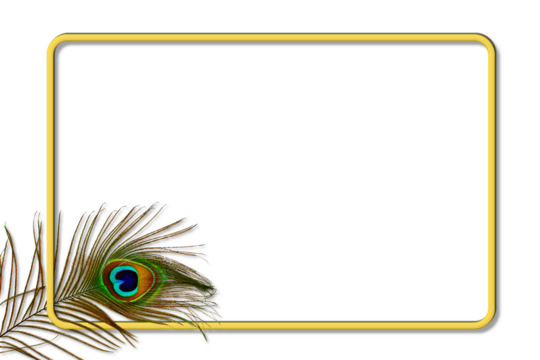 golden frame with colorful peacock feather texture design cutout in transparent background,png format