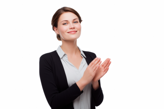 Applauding Achievement: A smiling woman in professional attire offers a heartfelt applause, showcasing support and acknowledgment.