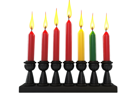 Celebrate kwanzaa with kinara candles and unity cup for african american heritage tradition holiday season on transparent background