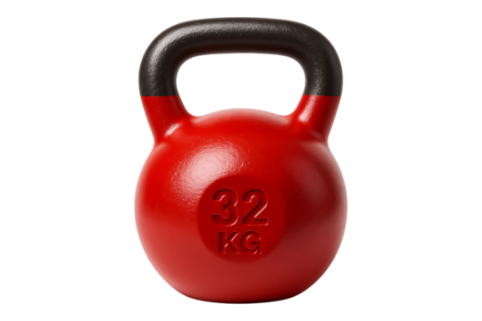 Heavy Red Cast Iron Kettlebell 32 KG Isolated on a Transparent Background