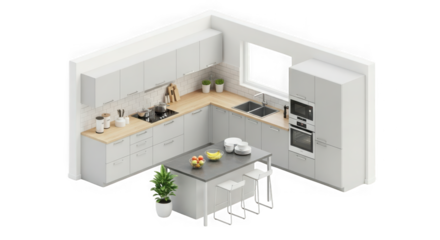 Modern l-shaped office desk two drawers isolated on a white background, On Transparent Background, Png