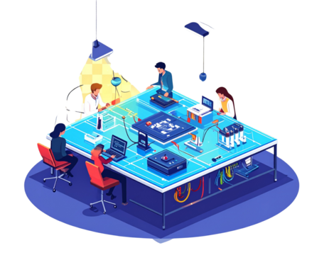 Focused Group Study in a Computer Lab - Isolated on White Background