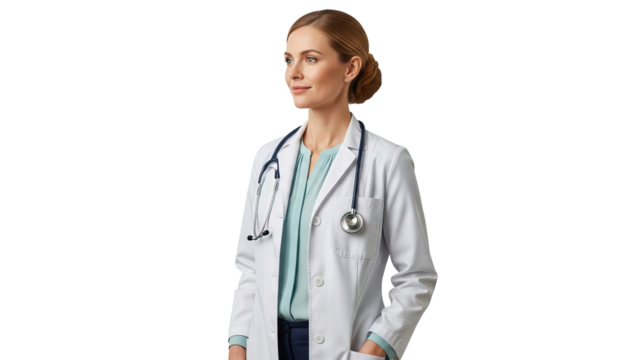 Transparent background doctor with stethoscope and lab coat