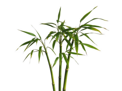 Serene green bamboo stalks with fresh leaves isolated on a white backdrop