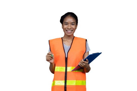 Smiling industrial african american worker isolated on transparent background PNG.
