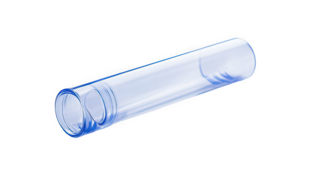 Transparent blue plastic test tube or vial on a solid for laboratory use