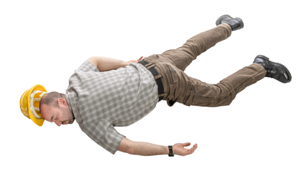Construction worker operating jackhammer for safety and equipment concept on transparent background, PNG