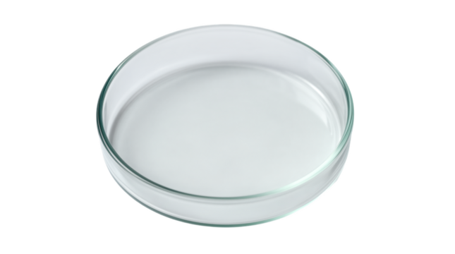 Clear petri dish containing red culture liquid for scientific experiment, cut out, stock png, isolated on transparent background