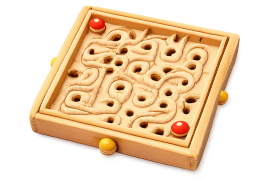 Wooden Labyrinth Puzzle Game with Ball and transparent background.