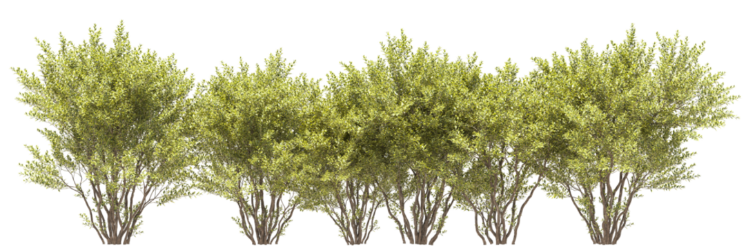 Line of medium size trees with green yellow leaves