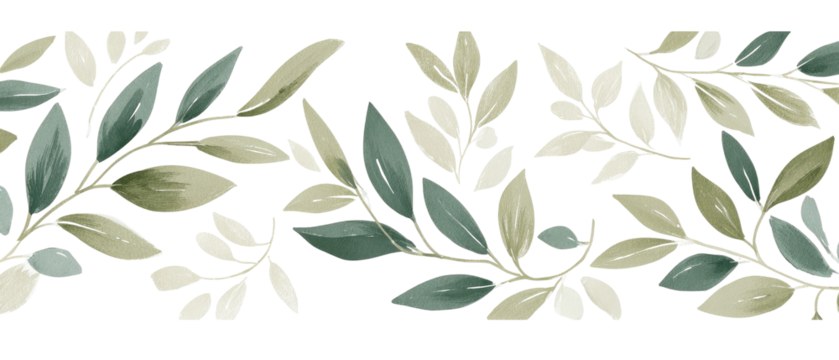 Vintage lace border with floral leaf patterns on transparent background