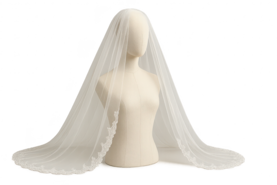 Elegant bridal veil with lace trim isolated on a transparent background studio shot