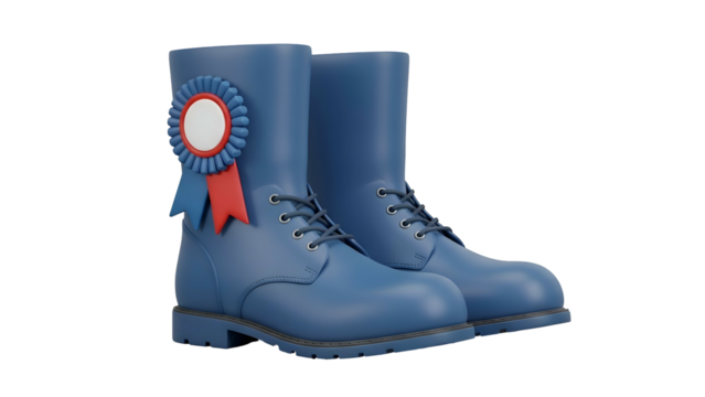 Pair of brown leather hiking boots with colorful laces isolated on transparent background