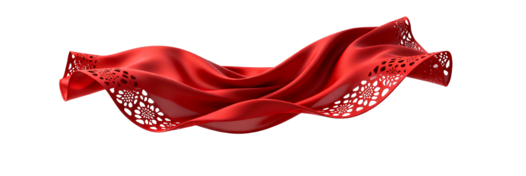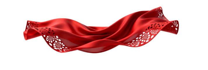Red Satin Ribbon with Lace Detailing, 3D Render