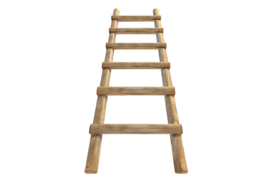Isolated on white, a wooden folding ladder with multiple steps stands as a versatile tool for construction and climbing towards success