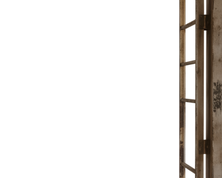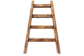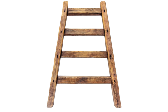 A wooden ladder standing alone on a white background, ideal for use in design and photography projects