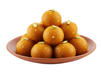 Delicious indian boondi ladoo dessert beautifully arranged on a white plate with Isolated on transparent background