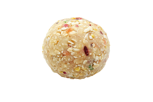 Colorful beaded laddu with cashew on transparent background