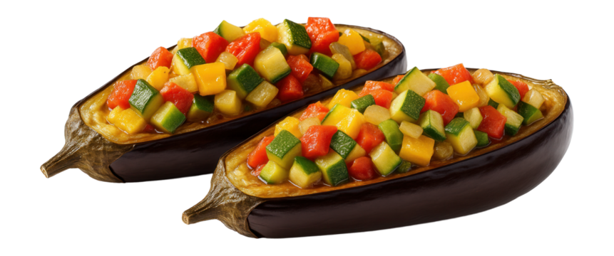 Eggplant curry with coconut milk and chickpeas, ladled into a deep, white soup bowl