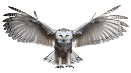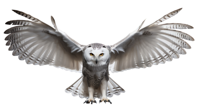 a white owl with yellow eyes