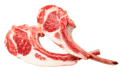 Australian lamb rack cutlets or Raw Frenched Rack Rib with isolate on white PNG File.