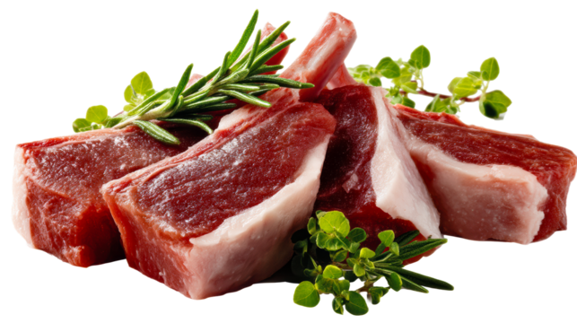 Fresh Raw Lamb Chops With Herbs, cut out transparent
