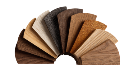 Wood laminate samples fanning out in a circle, showcasing various colors and shades of wood