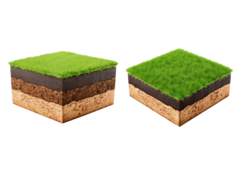 land ground or earth soil land and green grass section isolated on transparent or white background