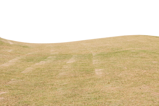 3d rendered mountain meadow hills isolated on black background. Patch of green grass lands with daisy flowers. 3d grassland scene.
