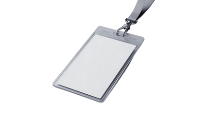 lank ID Card Mockup with Black Lanyard Isolated on Transparent Background.