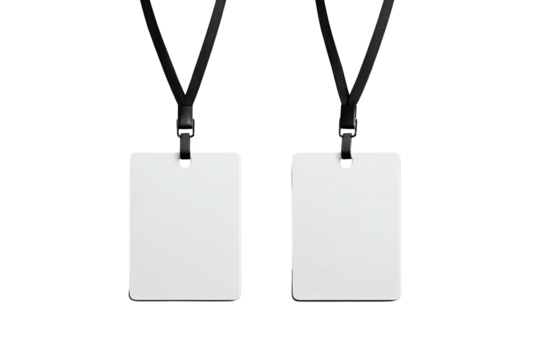 Blank white id card with a blue lanyard isolated on transparent background, perfect for showcasing employee identification, event access, or security clearance in a professional setting