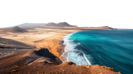 Beautiful Lanzarote Island Landscape with Clear Blue Sky and White Sandy Beach