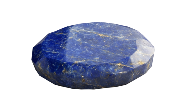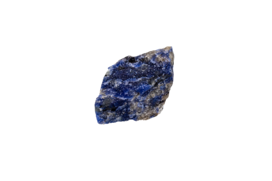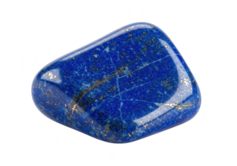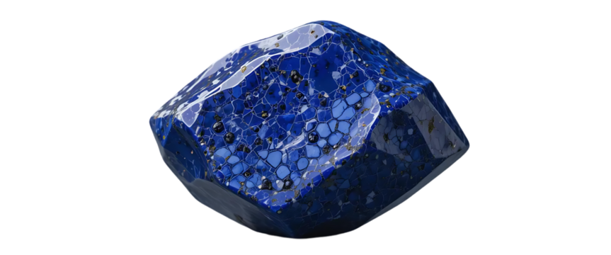 Blue lapis lazuli gemstone with natural mineral texture deep color and polished crystal surface isolated on white background