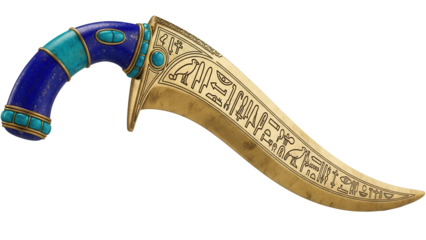 Tutankhamun s dagger PNG isolated on transparent background, ancient Egyptian ceremonial weapon with lapis lazuli handle and gold blade