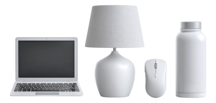 Digital office desk scene on transparent background