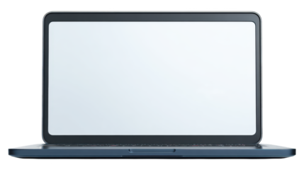 A sleek silver laptop with a black keyboard and a blank white screen, presented at a 3/4 view on a transparent background with ample copy space and no shadows, concept of professional technology
