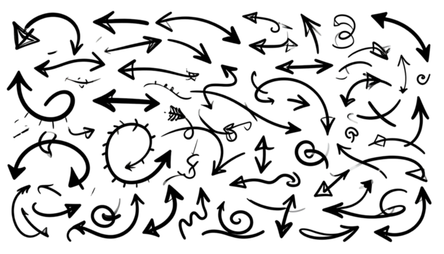Large hand-drawn arrow on transparent background
