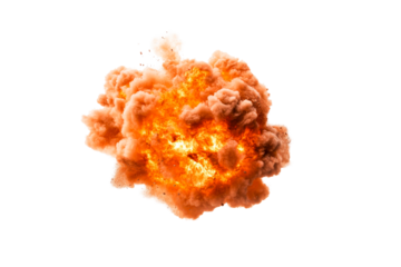 Realistic fire explosion creating a large cloud of smoke with transparent background