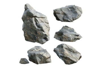 Set of large rock stone with broken texture isolated on transparent background