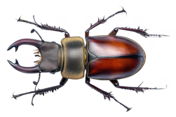 Close up of beetle or bug Insect isolated on transparent png background, entomology collection, anatomy of insect concept.
