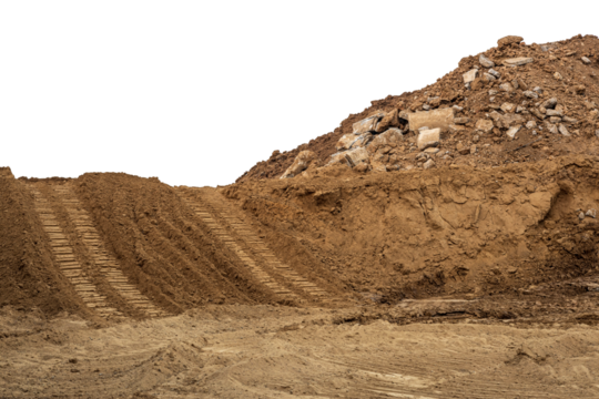 Pile of sand in construction site isolated on white background included clipping path.