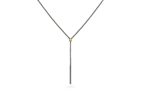 Elegant silver lariat necklace with golden bead isolated on transparent background
