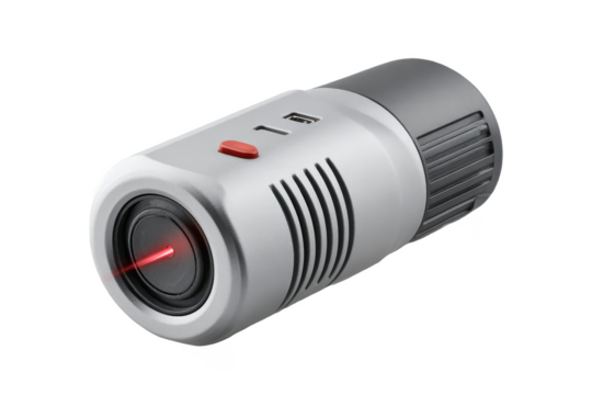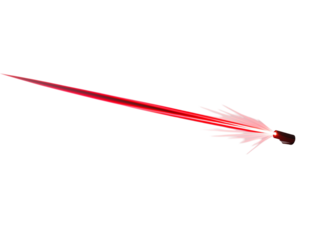 A single red laser beam emitting from a small device against a completely transparent background space scene png