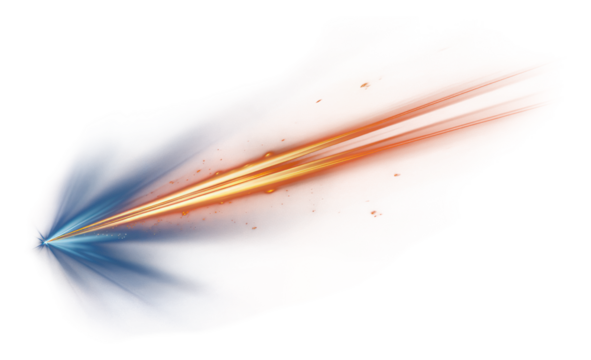 PNG curved motion streak with blue trail and glowing line across the dark road, as the laser beam breaks into light and a bright tail forms the main moving line PNG.