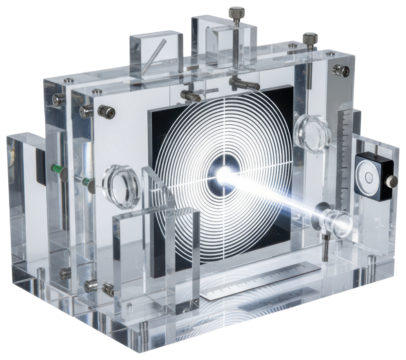 Physics laboratory optics experiment with laser beam isolated on a transparent background
