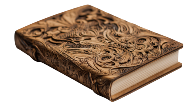 Wooden notebook cover with laser engraving background isolated on a Transparent background, PNG file.