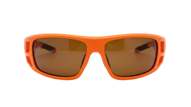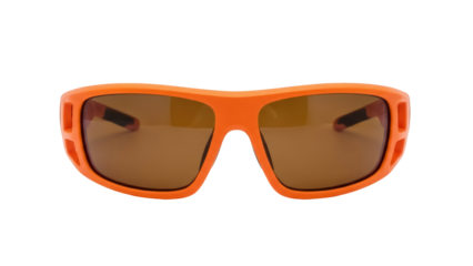 Isolated pair of sporty orange sunglasses provide sun protection for active outdoor lifestyles.
