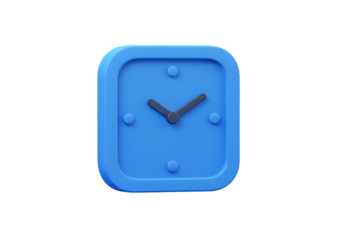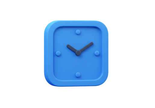 3D Rendered Blue Square Clock Icon Isolated on Transparent Background